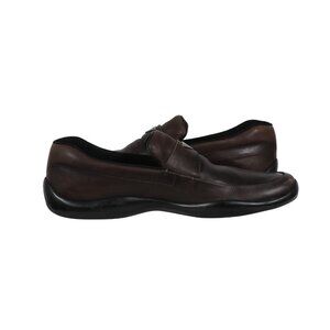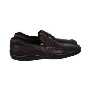 Prada Men Traingle Logo Plaque Loafers Size US 11 UK 10 Brown Leather Slip On