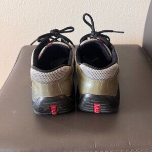 Step into luxury with these authentic Prada Men's America's Cup Sneakers, a signature piece from Prada’s high-fashion sportswear collection. Designed for both comfort and style, these sneakers are perfect for everyday wear or elevating your streetwear game.