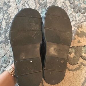 Elegant black leather sandals by Prada. Ideal for casual wear.