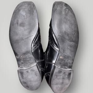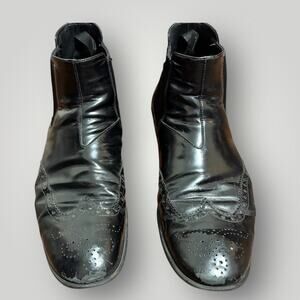 Prada Men's Black Leather Wingtip Chelsea Boots Metal Logo Heel Ankle 11 or 44
