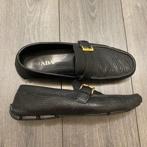 Prada Men's Black Textured Leather Driving Loafers Size 11.5