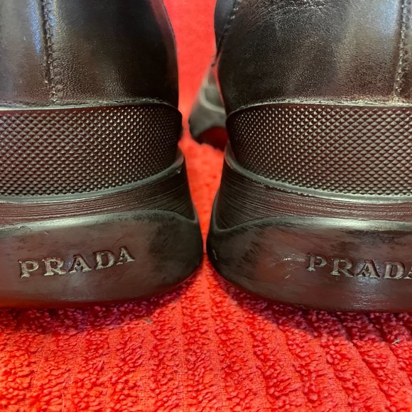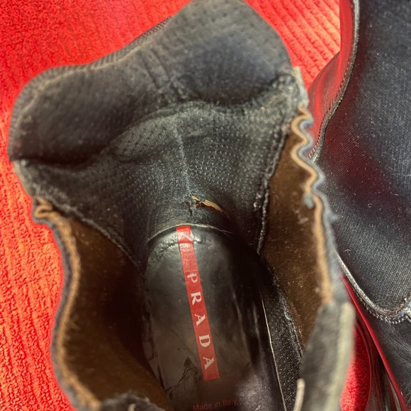 Prada Mens Chelsea Boots Black Leather Mid Calf Round Toe Pull On Made In Italy