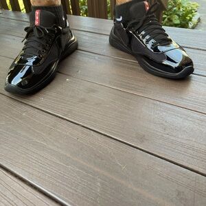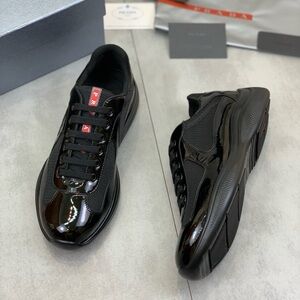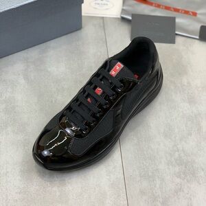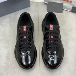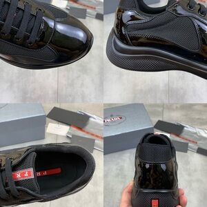 Prada Men's Glossy Black Sneakers with Red Accents- America’s Cup Sneakers