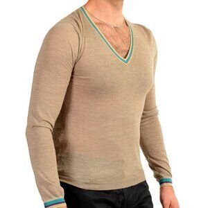 Prada Men's Gray 100% Wool V-Neck Pullover Sweater US S IT 48