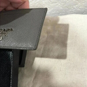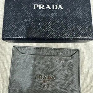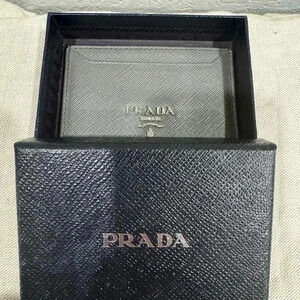 Elevate your style with this sleek gray card holder from Prada. Perfect for keeping your essentials organized.