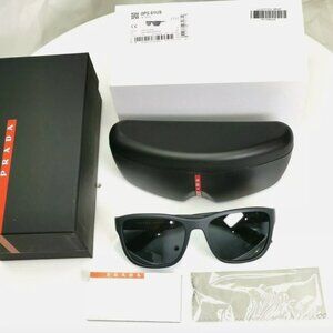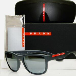 Prada Mens Grey Sunglasses Square Mirror Red Stripe