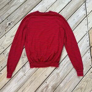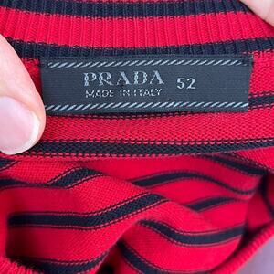 Prada Men's Red And Black Striped 100% Cotton Pullover Sweater Size 52 (42 U.S)