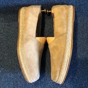 Prada Mens Suede Espadrilles 9.5 US (8.5 EU) in Natural color. Italian slip-on casuals with rope-wrapped sole. In excellent pre-owned condition; please zoom in to view these close-up! Included with shoes but not pictured are two Prada cloth shoe bags and Prada box. Shoe trees not included.