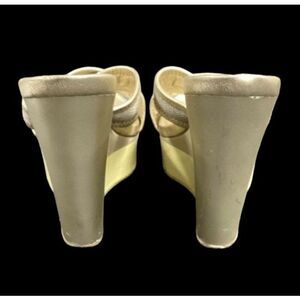 Prada Metallic Gold Leather Mesh Open Toe Slip-on Wedge Sandals