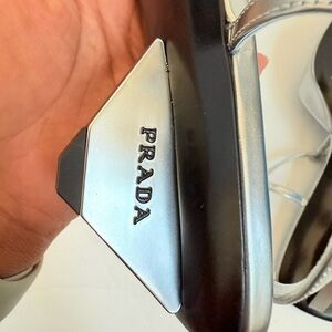Prada Metallic Grey leather Modellerie Pointed Toe Kitten Heel Pump EU 39.5