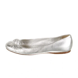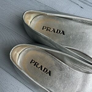Prada Metallic Silver Leather Ballet Flats Size 5.5