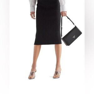 The design is enhanced by a precious and unexpected detail: Prada's iconic enameled metal triangle logo, which decorates the tip of the insole.
