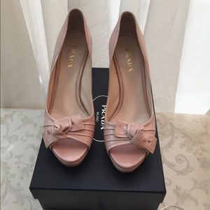 Authentic Prada Pumps, Bow details, light pink genuine leather, preowned , some sign of use, made in Italy , heels: 4.3" approx.