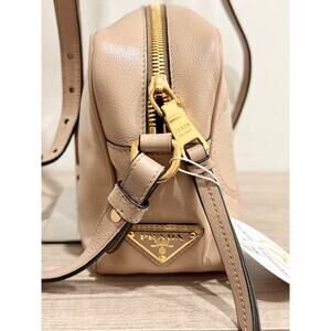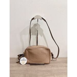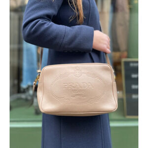 Prada Milano Beige Leather Logo Embossed Camera Crossbody Bag