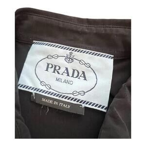Prada Milano Silk Blouse Button Down Ribbon Women’s Size XL Black Stretch *read