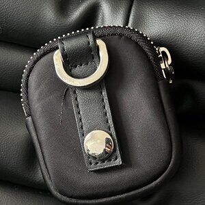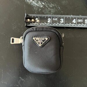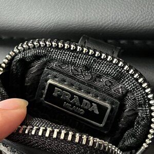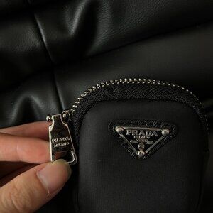 Black Prada mini-pouch with silver-tone hardware and zip closure at top