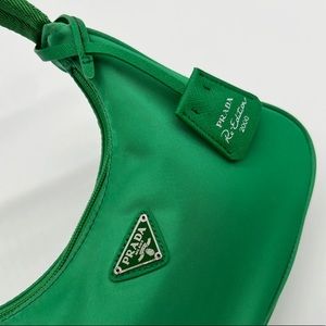 Exterior: Re-nylon, woven tape handle, enamel logo triangle plate.