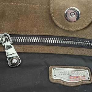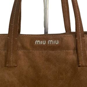 Prada Miu Miu Two Tone Suede Shopper Tote Handbag Brown