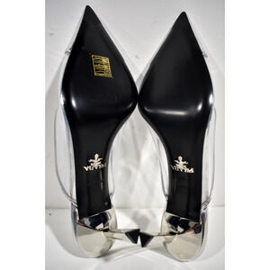 Prada Modellerie Clear PVC Silver Backless Pointed Sandal Mule Heel Pump 38