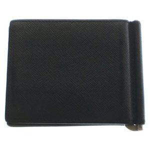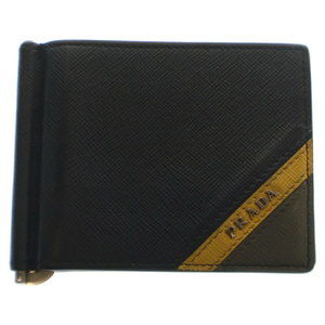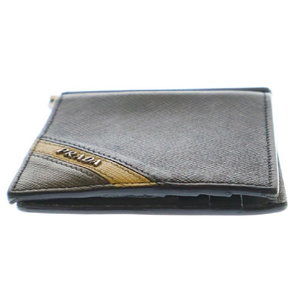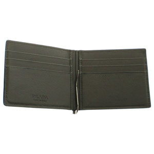 Prada Money Leather Wallet Clip Black Bifold Saffiano