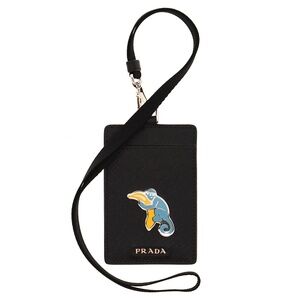 Prada Monkey ID Badge Card Holder Black Saffiano Leather 1MC07N New