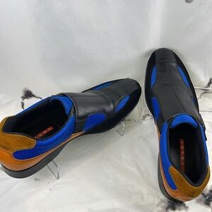 Prada Monkstrap Suede Sneakers Color Block Leather Nylon Velcro Strap