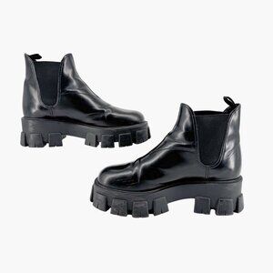 Prada Monolith Chelsea Ankle Boots Size 41 US 11 Black Leather Lug Sole Combat