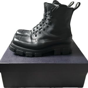 -Leather and rubber upper/leather lining/rubber lug tread sole