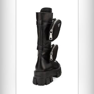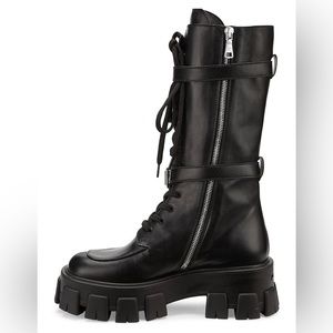 Prada Monolith Lug-Sole Tall Leather Combat Boots 40