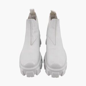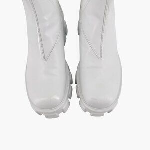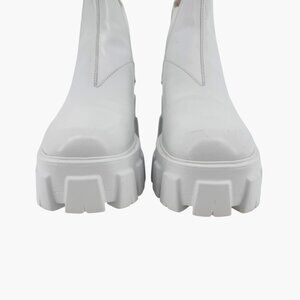 Prada Monolith White Leather Chelsea Ankle Boots Lug Sole Size 37 US 7 Women's