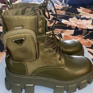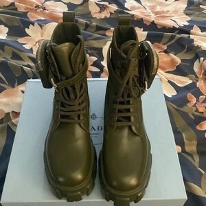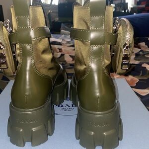 Prada leather & nylon Miltiare(Olive Green boots)