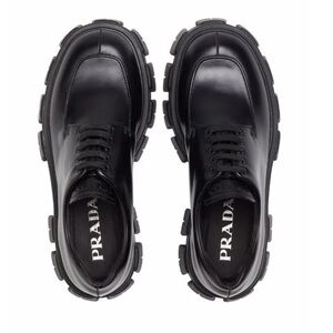 Prada Monolith brushed leather black lace-up dress shoes with lug sole