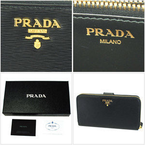 Prada Zip Long Wallet Leather Black NERO Includes a Certificate of Authenticity!