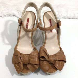 Prada Napa Aviator Bow Espadrille Sandal Wedges Size 36