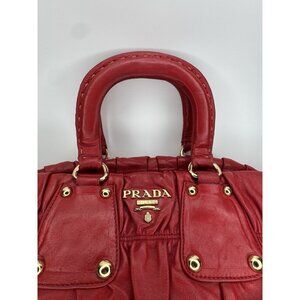 Prada Napa Gauffre Tessuto Red Leather Two Way Bag Gold Hardware