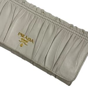 Prada Nappa Leather Gather Long Trifold Wallet Cera Cream Logo Women