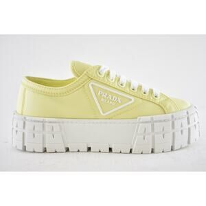Prada Narciso Yellow Nylon White Platform Lug Sole Flat Low Top Trainer Sneaker 36.5