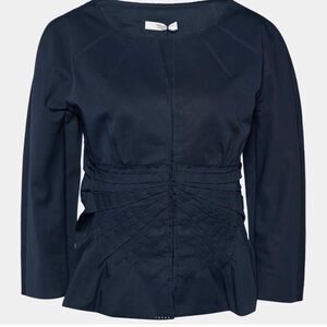 Prada Navy Blue Gabardine Draped Detail Hook Front Jacket M