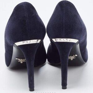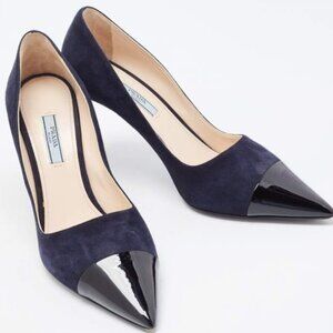 Beautiful pair of women's Prada Navy Blue/Black Suede and Patent Leather Pointed Toe Pumps Size 36 (6.5 US)