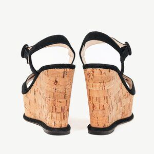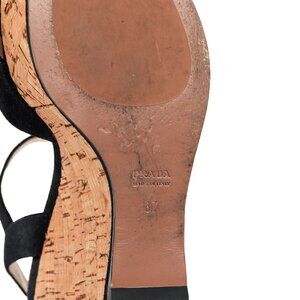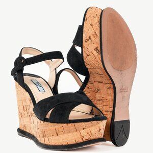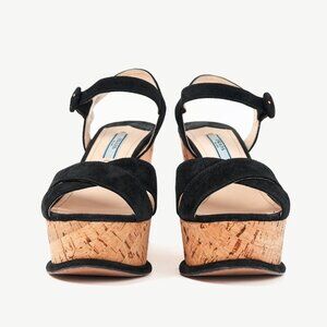 Prada Nero Scamosciato Suede Cork Wedge Sandals