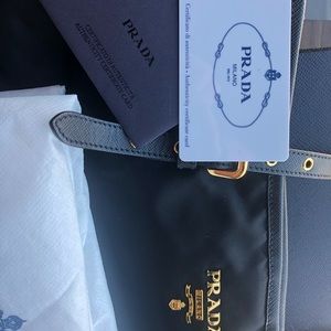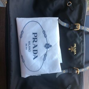 Extremely durable Prada bag. The only material that I like for a Tote. It’s a Black nylon that wipes clean. Last to picture of the post show how big the tote can expand to!