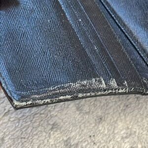 See photos for preowned condition. Nylon has a little rippling. Interior leather in very good condition with a small amount of rubbing at corner. Small rip in lining inside coin compartment