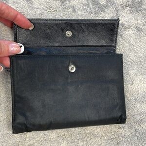 Prada Nylon Envelope Snap Wallet Black Designer Classic Everyday Triangle Plaque
