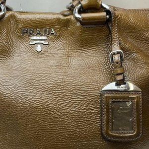 Prada Olive Ombre Vernice Crinkle Patent Leather Shoulder Tote comes with COA