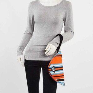 Prada Orange/Blue Striped Canvas Triangle Wristlet Clutch Bag