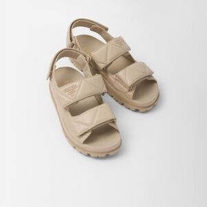 Chic Prada sandals in light tan. Ideal for everyday style, really comfy.