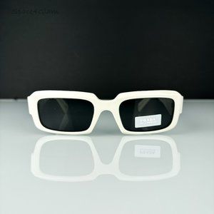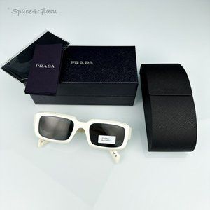 Prada PR27ZS 17K08Z Sunglasses Talc White Dark Grey Unisex Rectangle PR 27ZS