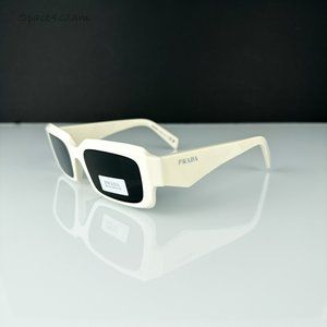 Prada PR27ZS 17K08Z Sunglasses Talc White Dark Grey Unisex Rectangle PR 27ZS