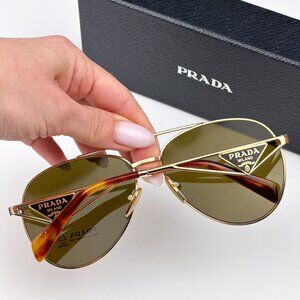 Prada PR73ZS 5AK01T BRAND NEW Sunglasses Shiny Gold Dark Brown Pilot Unisex
