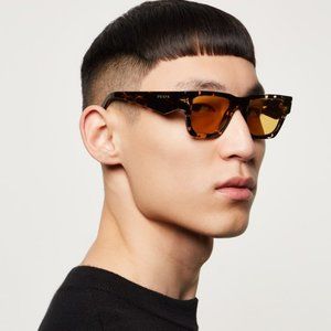 Prada PRA06S 16O10C Tortoise Black Malt Yellow Square Unisex Sunglasses PR A06S